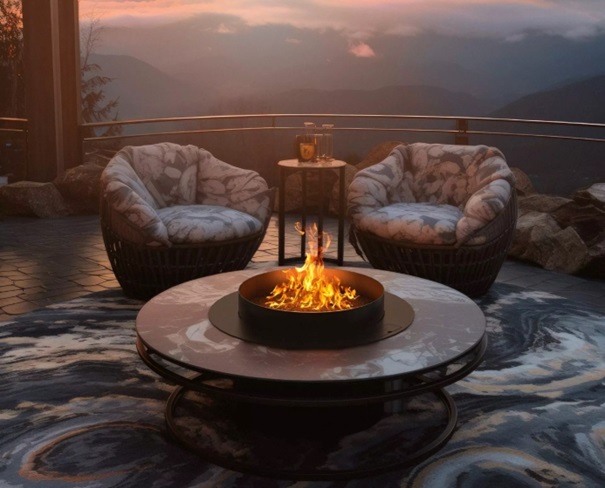 • stoły z ogniem (kominek + stolik)